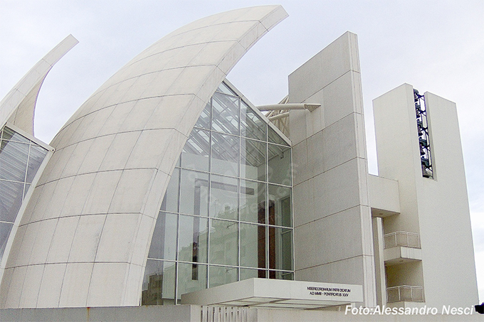 プレスティーナ通りとカシリーナ通りに挟まれたアレッサンドリーノ地区にある2000年代に建設された白の印象が強い教会は、2000年のジュビレオ聖年に教皇ヨハネ・パオロ2世の依頼により誕生した神の慈悲教会です。2003年に完成しました。