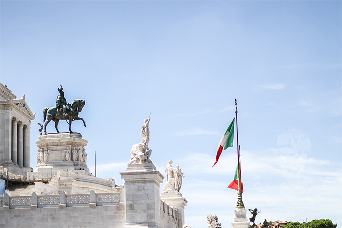 イタリア統一後の初代王ヴィットリオ・エマヌエーレⅡ世のためのモニュメントと、第一次世界大戦で犠牲になった無名の兵士が祀られており、無名戦士の碑の前には衛兵が交代で立っています。