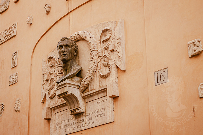 断片の中にひとりの男性の胸像が埋め込まれています。この建物にアトリエを構えたアントニオ・カノーヴァの胸像です。