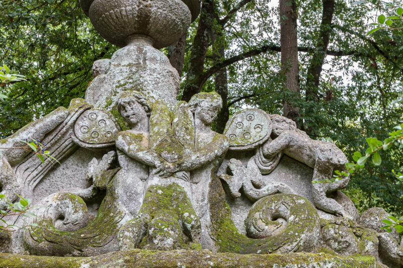 ローマやラツィオで有力なオルシーニ家のピエルフランチェスコ・オルシーニが妻を失った悲しさのため妻に捧げる意を込めてピッロ・リゴーリオに依頼して誕生したのがこの聖なる森なのです。リゴーリオはグロテスクな彫像をギリシャ神話の神や人食い鬼などに置き換えて彫刻を作り上げました。その後、1585年のオルシーニ家の衰退から長いこと忘れられた森でしたが1950年代の終わりにベッティーニ夫妻により発見され、修復されました。その際に彫像は現在の位置に置かれ、当初の配置とは異なるようです。今では怪物公園として名が通っています。